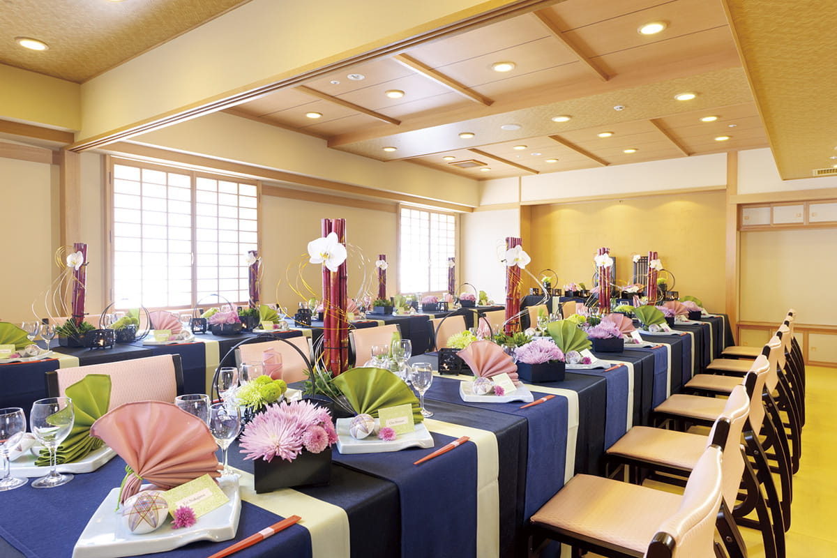 ご親戚等がお集まりいただく大人数でのご結納やお顔合わせも、広い空間でお寛ぎいただけます。