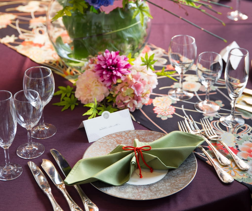 ゲストテーブルのコーディネートや、招待状・席札などのペーパーアイテムも、おふたりの想いを表現できる場所。専属プランナーからのご提案アイテムから、おふたりで手作りするアイテムもアイディア次第です。