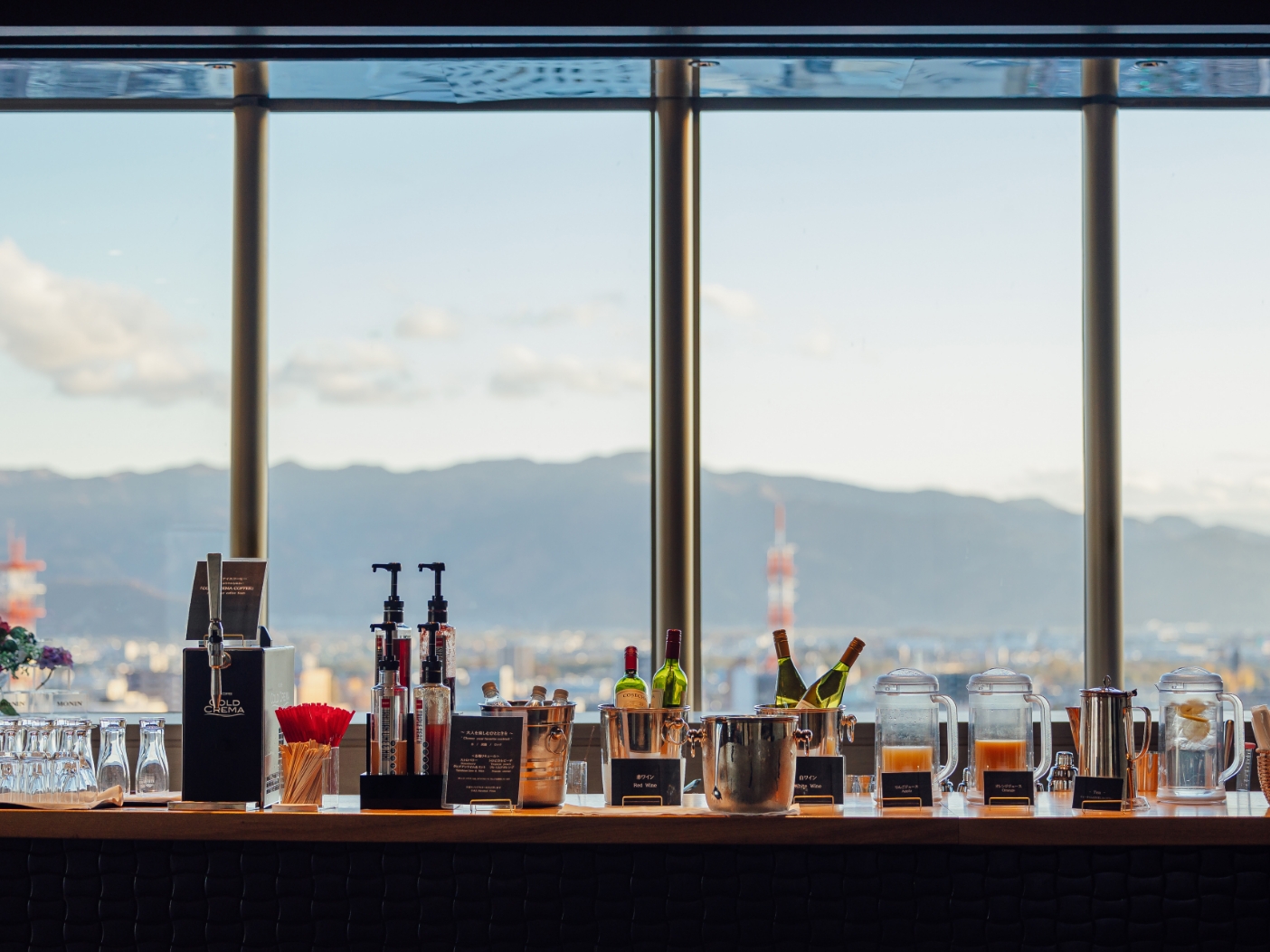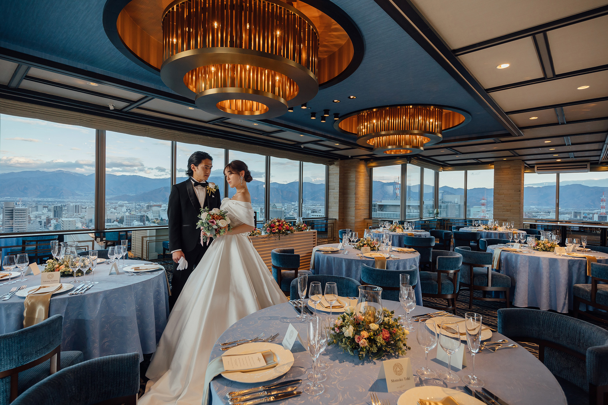 Boulangerはホテル国際21で最上階の16階に位置する披露宴会場。昼は山々が美しくそびえ、黄昏から夜に向かって宝石のような夜景が広がります。
