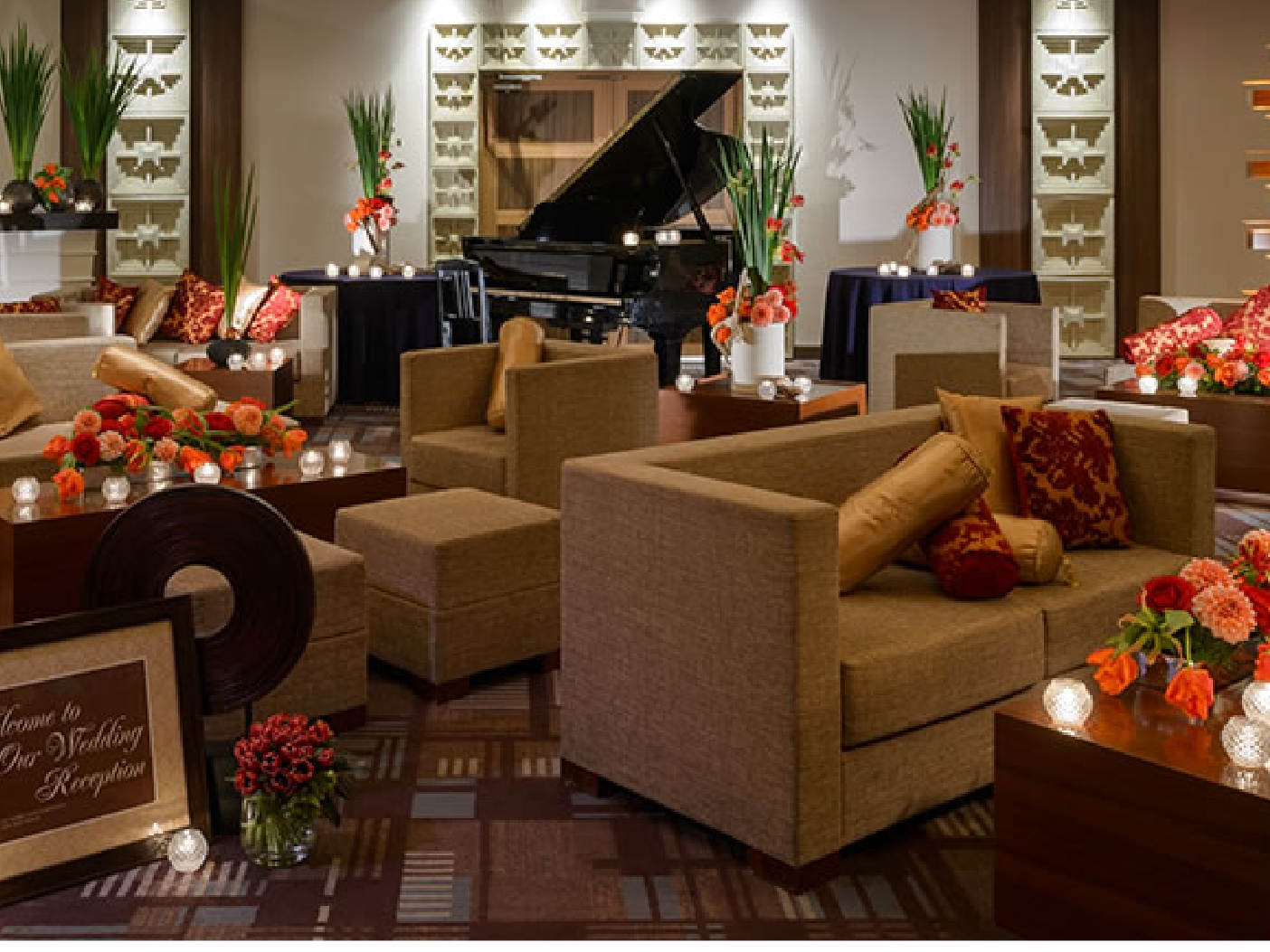 くつろぎと上質感を兼ね備え、おふたりらしさを表現できるホワイエ。当日の緊張を和らげ、ゲストとの交流を落ち着いて楽しめる理想のウェルカムスペースが叶います。